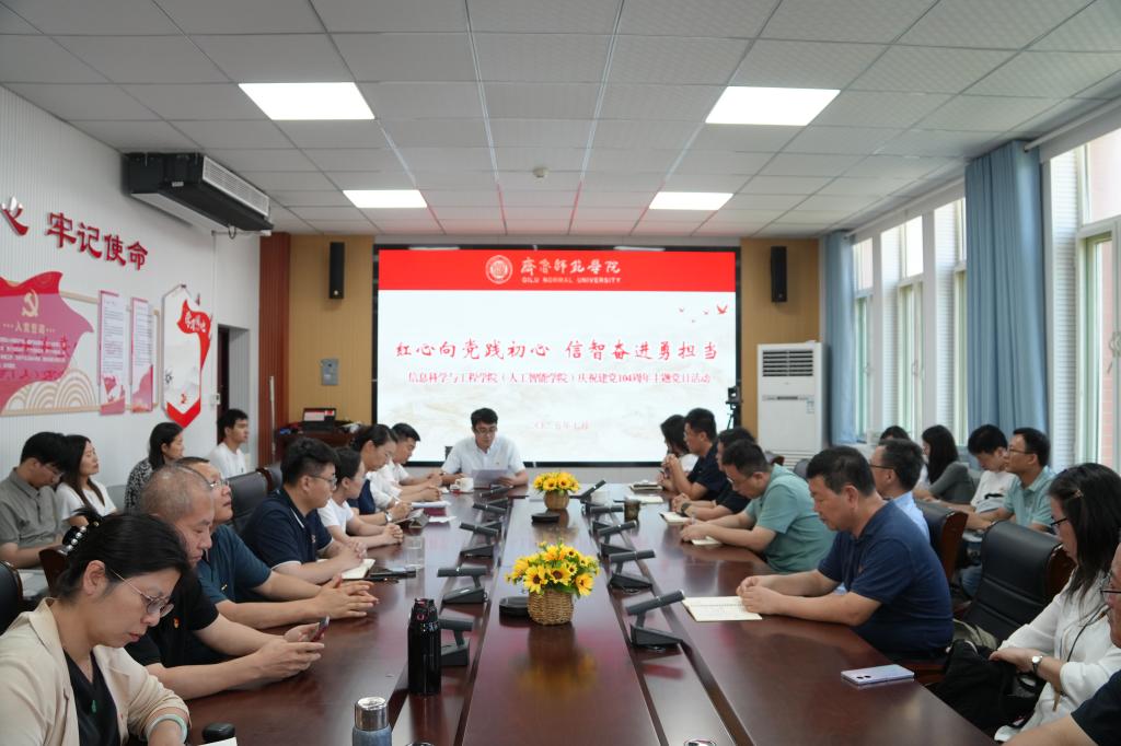 为热烈庆祝中国共产党成立104周年,传承红色基因,强化党员使命担当,7月3日,信息科学与工程学院党委开展“红色向党践初心 信智奋进勇担当”主题党日活动。学院党委书记赵青、院长杜建彬,学院师生党员代表参加,共同为中国共产党庆祝生日,汲取奋进力量。活动由学院党委副书记姜麒麟主持。