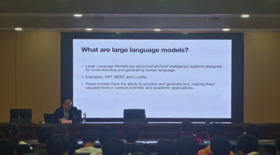 报告会上,丁泳程围绕大语言模型在学术工作中的应用,深入浅出地讲解大语言模型在写作、课题立项、同行评议等方面中的辅助作用,并以简单的实例讲解其使用技巧。通过丁泳程的深入讲解,师生们对大语言模型有了更深层次的认识。在交流环节,参会师生对报告中感兴趣的内容积极提问,丁泳程也进行了耐心解答。