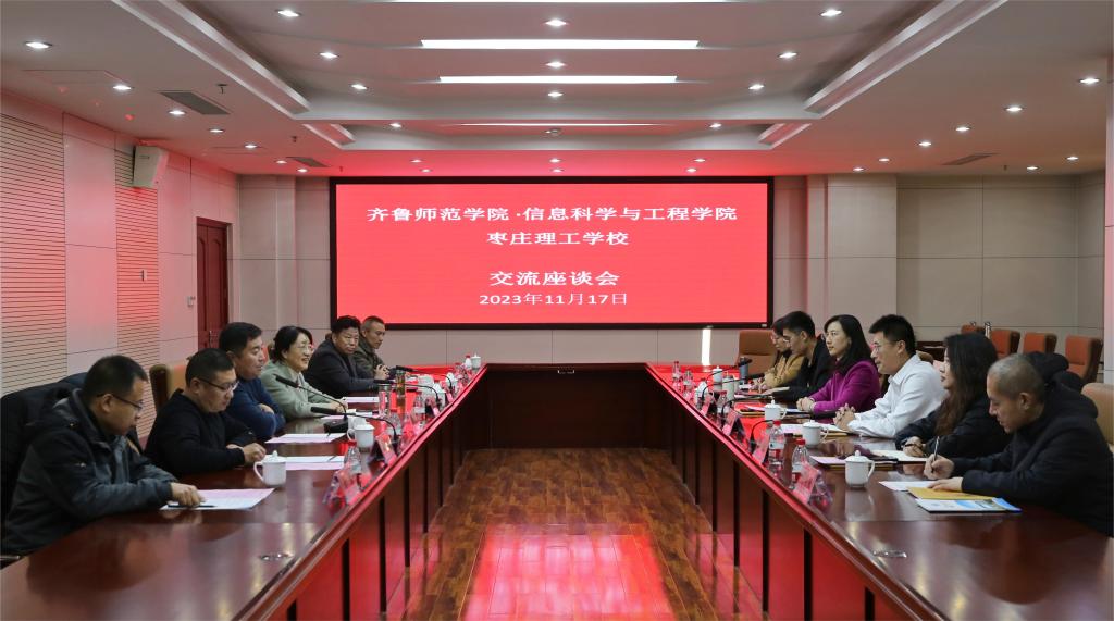 为深入调研了解中等职业教育师资需求,拓展职业本科教育,探索职普融通机制。近日,齐鲁师范学院信息科学与工程学院(人工智能学院)党委书记赵青、院长杜建彬、团总支书记李绚、教师代表韩业红教授、闫乐林教授一行赴枣庄理工学校,与枣庄市薛城区副区长周海燕、区教体局局长种法立、枣庄理工学校校长张飞龙举行交流合作座谈会及教学实践基地签约挂牌仪式。