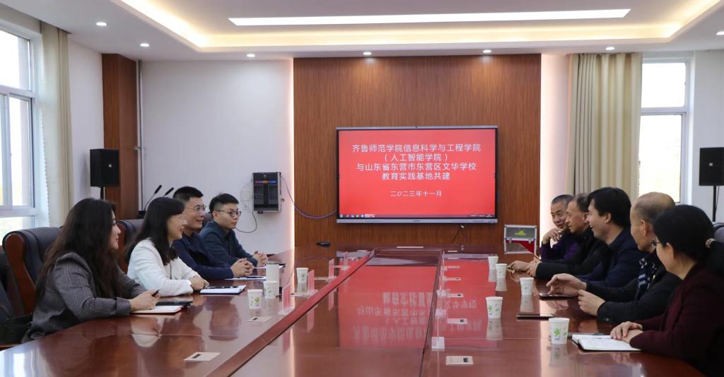 为进一步了解基础教育对信息技术课程师资的需求,深入推进师范生实践教学改革发展,切实做好学生实习实践工作,不断提高师范生人才培养质量,构建毕业生追踪指导机制。11月19日,齐鲁师范学院信息科学与工程学院(人工智能学院)党委书记赵青、院长杜建彬、团总支书记李绚及辅导员刘树昊一行赴东营市东营区文华学校,进行交流合作座谈及实践教学签约挂牌仪式。