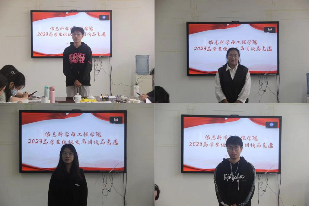为加强院学生组织队伍建设,营造积极的学习氛围,保证学院学生工作的日常管理,促进学生的交流与合作,10月19日,信息科学与工程学院举行2024届学生组织主席团竞选大会。出席本次会议的有团总支老师及现任主席团全体成员,会议通过线上线下相结合的形式同时进行。