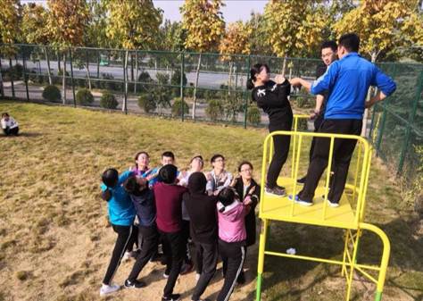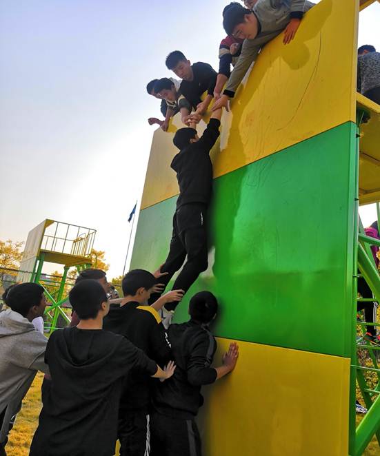 第三个项目逃生墙,有助于同学们增强团队合作意识。在有限时间内使学生们全部“逃生”成功,需要同学们构建人梯,并依靠大家的齐心协力,才能最终翻越这道逃生墙。这项活动,打破了大家之间的隔膜,使大家学会了换位思考,以及向自我挑衅的这样一种可贵品质。有助于新生们提高心理素质,战胜惧怕,规范自我行为同社会、集体利益的关系,靠理智及对伙伴的信任战胜惧怕,并切身体验到什么是“充分信任、相互依赖”。