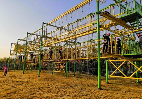 第一个项目穿越空中走廊,共含17个环节,难度节节增加,同学们由一开始的害怕畏怯、尖叫声此起彼伏,到后来逐渐地坚定了信念,不时传来突破自我后欣喜的喝彩声,最终圆满完成任务。