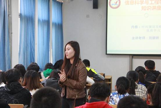 作为表示从学生走过来的刘老师,选择了一个比较暖场生动的演讲方式,与学生互动式、交流式的演讲。像是一位学姐在谆谆教导,同学们也很快的融入了刘老师的氛围,津津有味的咀嚼着这位“大”学姐的精神食粮。