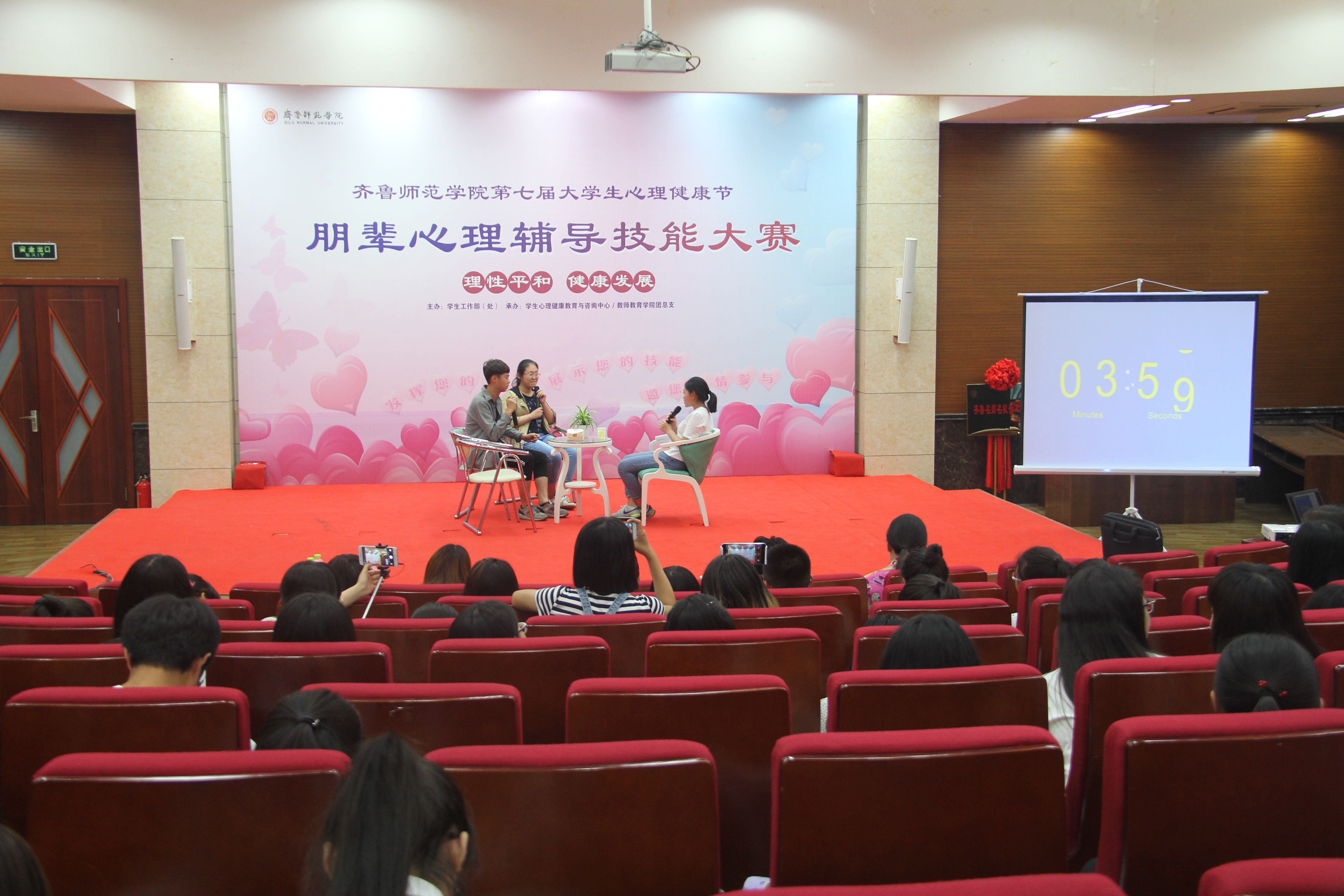 为了促进学生心理的“理性和平,健康发展”,齐鲁师范学院朋辈心理辅导技能大赛于2017年5月18日在学术报告厅举行。大赛分为半决赛和决赛两场。信息科学与工程学院学生代表队参与了本次比赛。他们将通过心理剧的表演,展现大学生的独特风采。