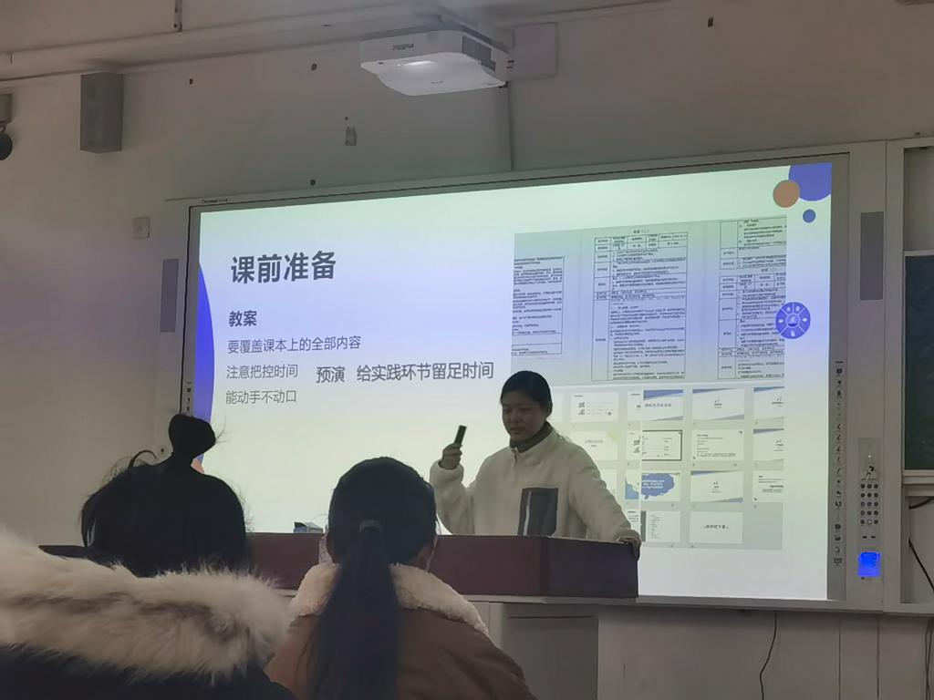 刘文俐学姐从实习生活、备课、授课、课堂管理等多个方面详细地分享了她的实习经验,具体到用餐午休、ppt制作、课堂纪律等事无巨细。经验分享后就21级实习生实习过程中的疑问一一做出解答,对于学生了解实习工作、树立实习信心起到了极大的帮助。