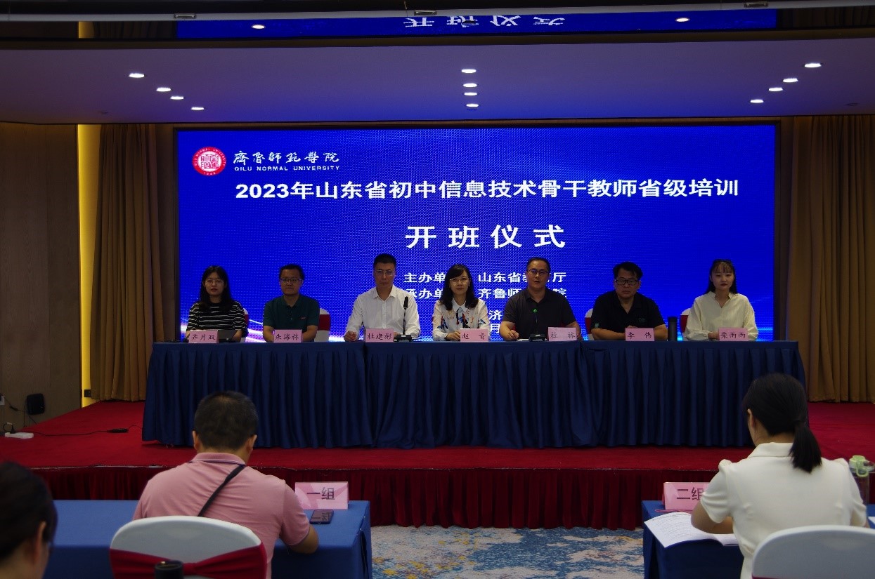 为促进省级骨干教师专业成长,落实《山东省教育厅关于组织实施2023年山东省中小学幼儿园教师校(园)长省级培训的通知》要求,9月12日—16日,由齐鲁师范学院信息科学与工程学院承办的2023年山东省初中信息技术学科骨干教师培训班在济南顺利举行。杜建彬院长代表项目组委会作会议致辞,介绍了齐鲁师范学院的办学理念和信息科学与工程学院基于OBE理念构建师范人才培养体系、着力打造职前培养职后培训一体化发展的教师教育特色,希望以此次培训为契机,坚持“资源共享、教学共研、文化共生、发展共赢”的原则,推动我省信息技术教育教学改革。项目首席专家杜林教授解读了骨干教师需求调研分析报告、执行方案的设计主旨、实施路径和考核评价方式,阐述了课程模块的设置理念。
