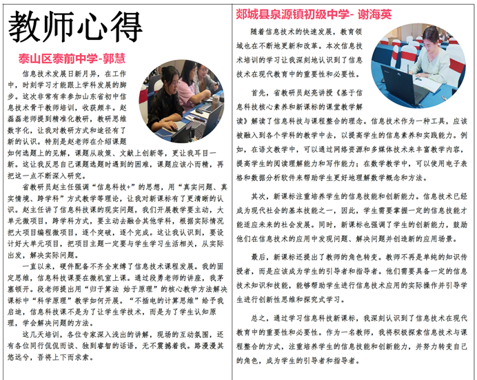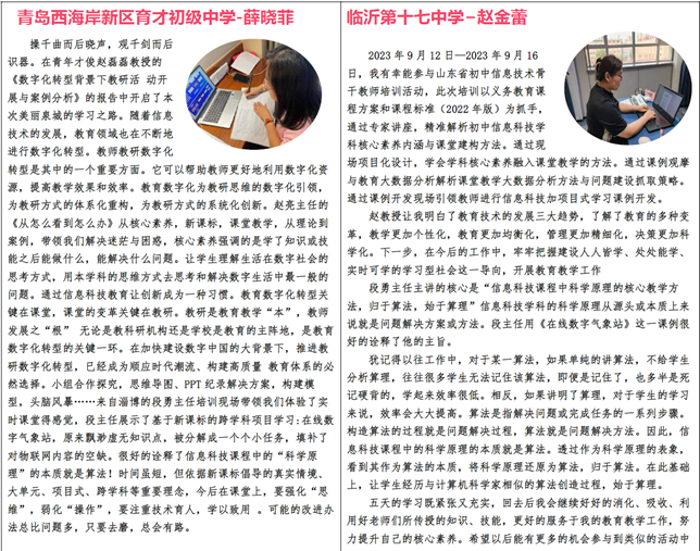 信息科学与工程学院以此次培训为契机,依托省培平台,坚持“资源共享、教学共研、文化共生、发展共赢”的原则,致力于研究和推动基础教育教学改革,探究区域信息科技师资发展需求和面临的问题,把职后培训成果和资源前置到师范专业人才培养中,推动基础教育师资职前培养与职后一体化发展。