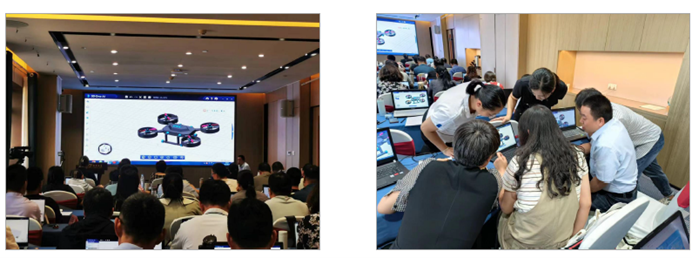 莘县新城高级中学的王增福老师从分析实体无人机的优势和弊端入手,带领大家领略虚拟仿真无人机的魅力。无人机作为一种新兴的科技产品,走进校园活动成为一种新颖的校园活动形式,在信息科技教育教学中不仅能够为学生提供创新体验,而且还可以科普教育和创造力培养的机会。