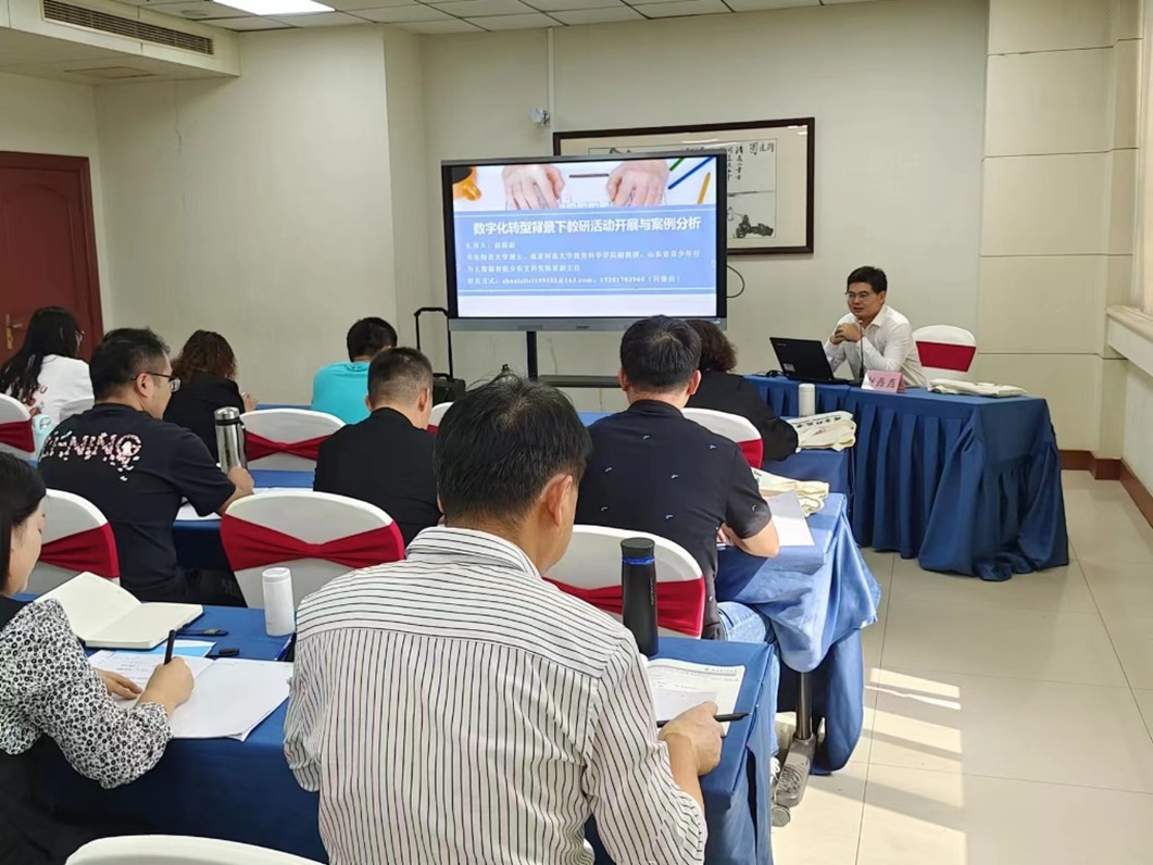 南京师范大学教育科学学院的赵磊磊副教授进行了《数字化转型背景下教研活动开展与案例分析》专题讲座,为大家详细阐述了教师教研数字化转型内涵、价值意义、特征分析以及典型案例,共同探讨了数字化协同教研的实施路径和研究方向。