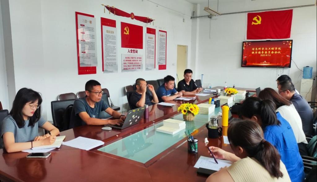 2023年7月21日上午, 信息科学与工程学院召开教学指导委员会工作会议。教学指导委员会主任杜建彬、赵青,副主任秦超,教学指导委员会成员杜林、苏鹏、戚文静、冯希叶、陈檀、钮小萌、唐海亮及学院师范专业认证领导小组成员参会。会议由杜建彬主持。