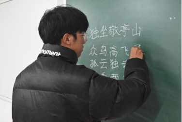 黑板上呈现出一个个字迹工整、优美流畅的汉字