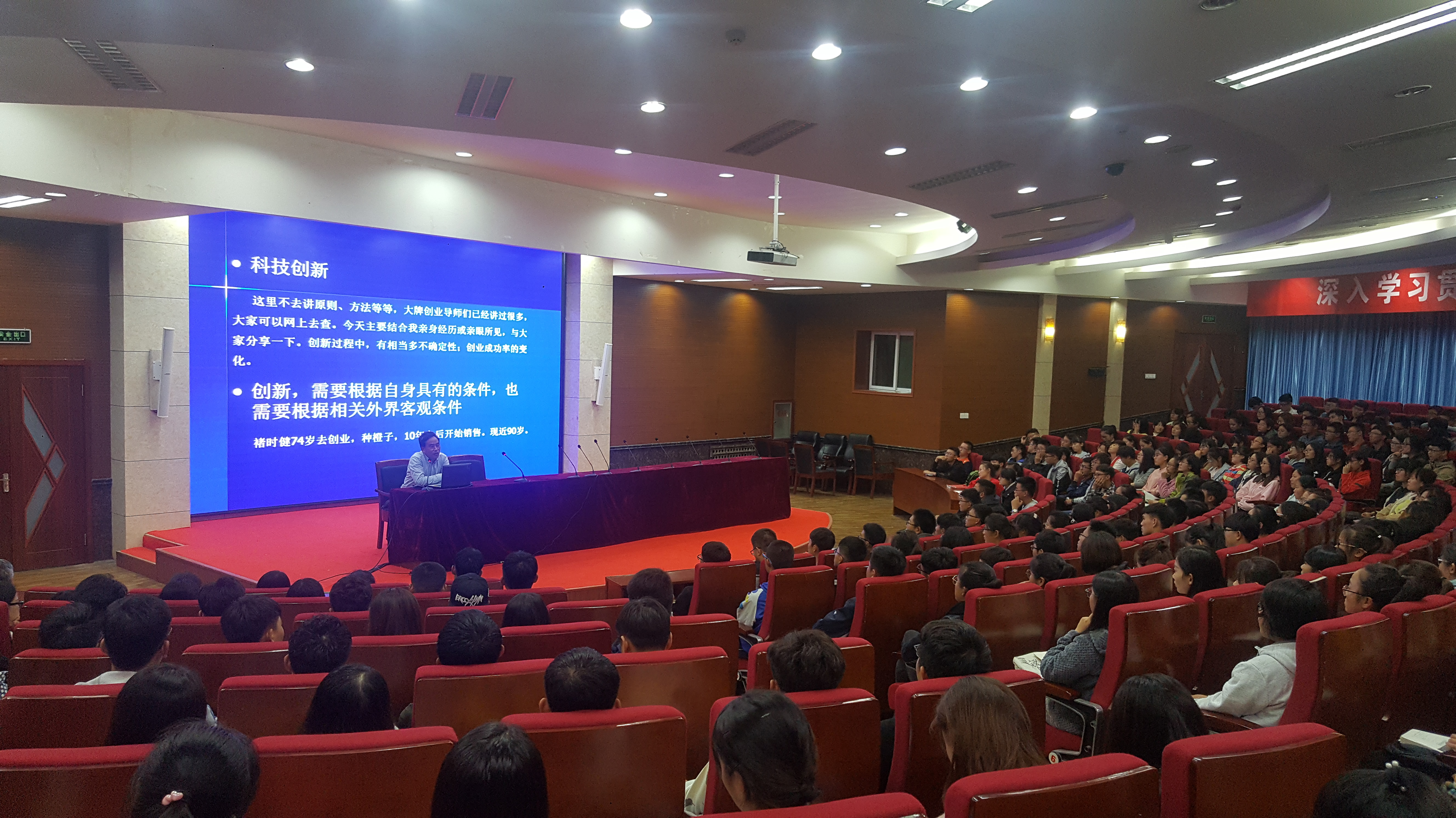 图为:10月10日,学院邀请清华大学袁涛教授举办了一场包括173名新生科技社团新成员在内的近300名科技创新团队成员和爱好者参与的科技创新学术报告。