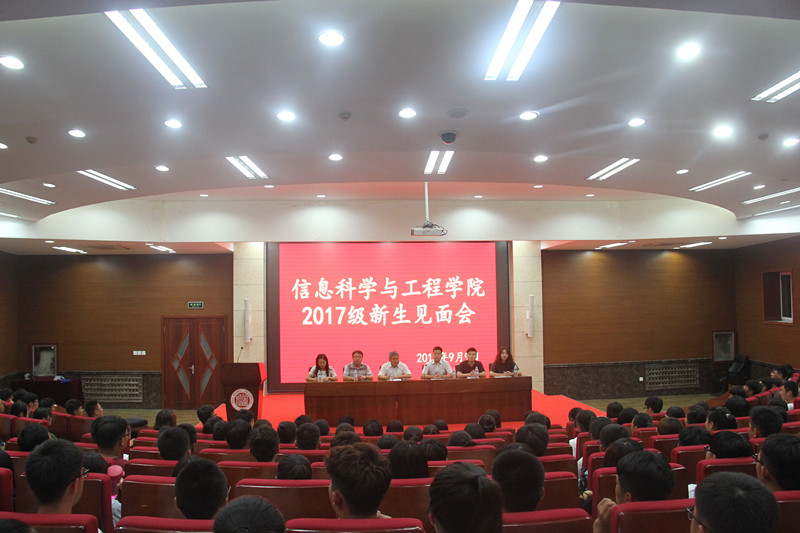 9月9日晚,信息科学与工程学院2017级新生见面会暨新生迎评动员会在章丘校区学术报告厅隆重举行。学院院长李树金、党总支书记贾国斌、副院长刘斌,团总支书记张恒悦、学院教师、辅导员李绚、李林如以及学院教师出席会议,学院学生会全体成员、老生代表和2017级全体新生参加了会议。会议由贾国斌主持。