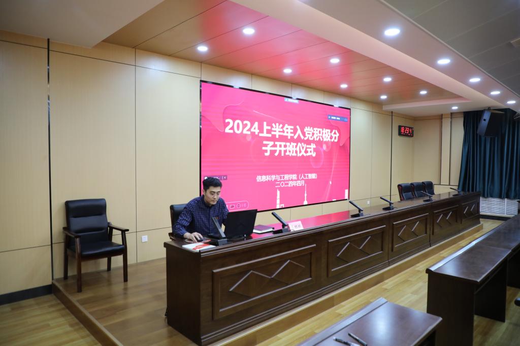 为贯彻新时代党建要求,强化入党积极分子培养教育,提高政治素质和理论水平,选拔优秀后备力量,切实把好党员发展的“入口关”和“质量关”。4月8日,信息科学与工程学院(人工智能学院)于章丘校区第二学术报告厅举行入党积极分子培训班开班仪式暨主题党课学习。学院党委书记赵青,党委副书记姜麒麟,学生第二党支部书记张恒悦,支部委员李鹏飞、刘树昊及新确定的入党积极分子共同参与活动。