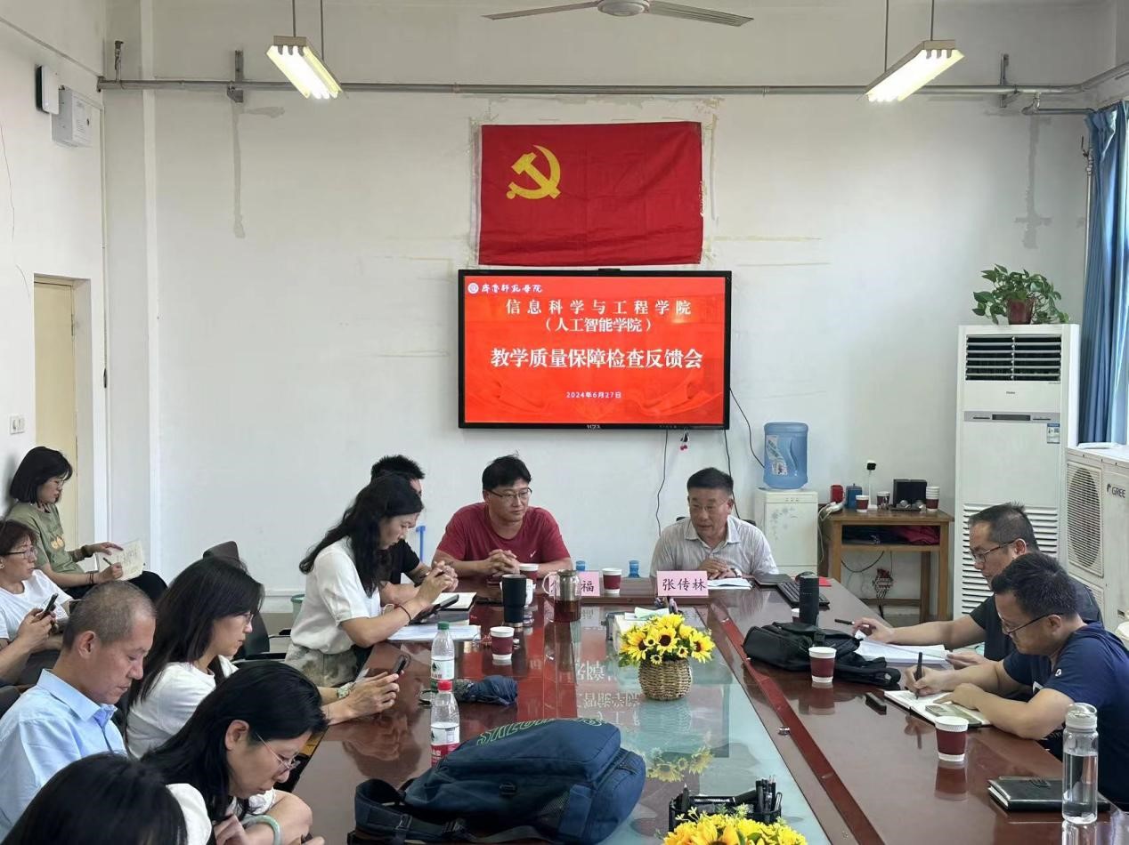为进一步优化教学管理,不断建立健全本科教学质量保障体系,做好课堂教学质量监测与反馈闭环,6月27日下午,信息科学与工程学院(人工智能学院)在章丘校区学院会议室召开本学期教学质量保障检查反馈会。校级督导张传林教授、焦培福教授出席会议,学院领导班子成员及全体教师参加会议。会议由学院院长杜建彬主持。