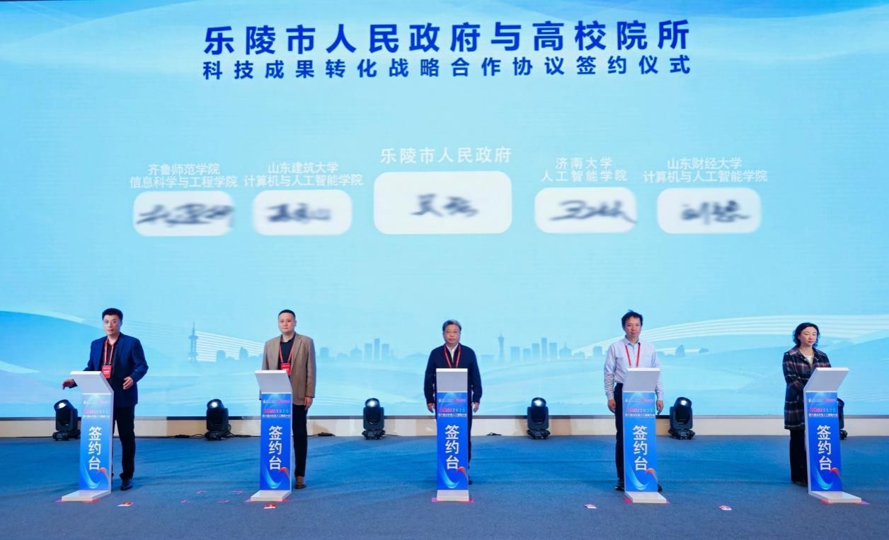 会议期间,我院代表团积极参与了多项主题报告和分论坛活动,与各界同仁广泛开展交流,分享学我院在人工智能相关领域的科研进展与见解。作为本次会议的重要环节,学我院与乐陵市人民政府正式签署科技成果转化战略合作协议。双方将秉持“优势互补、资源共享、协同创新、共同发展”的原则,在人工智能技术研发、成果转化、产业孵化与人才培养等方面开展全面合作。