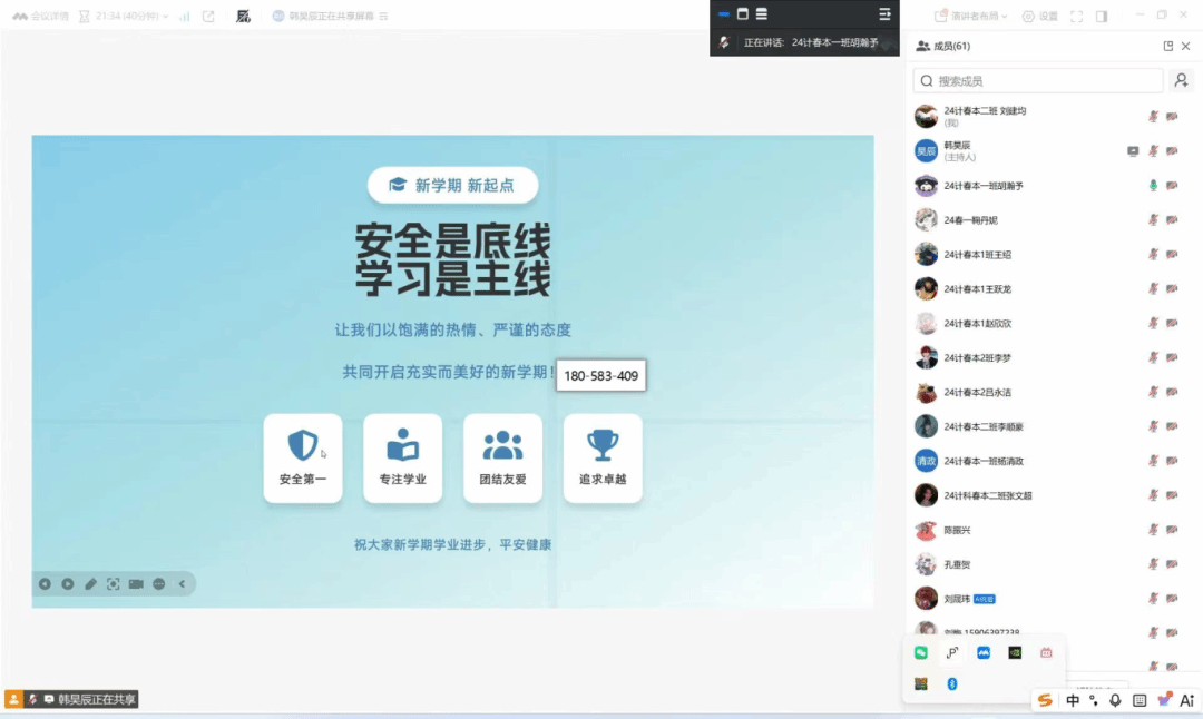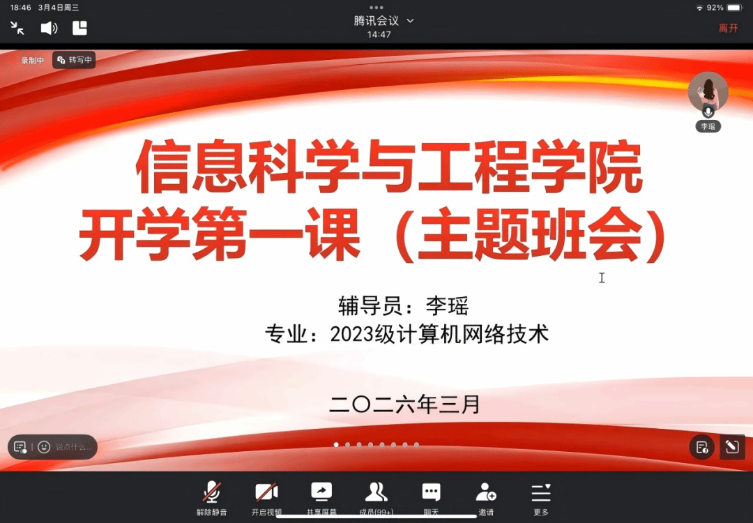 聚焦安全教育,筑牢思想防线。班会围绕新学期校园安全工作要求,从返校交通安全、校园消防安全、宿舍用电安全、食品卫生安全等方面进行全面系统讲解。各年级辅导员结合典型案例,深入剖析网络诈骗的常见手段及防范措施,重点强调校园防冲撞、防欺凌工作的重要性,教育引导学生时刻保持安全警惕,严守安全底线,切实保障人身财产安全。同时,关注学生心理健康状况,引导学生合理调整作息规律,以阳光心态迎接新学期学习生活。