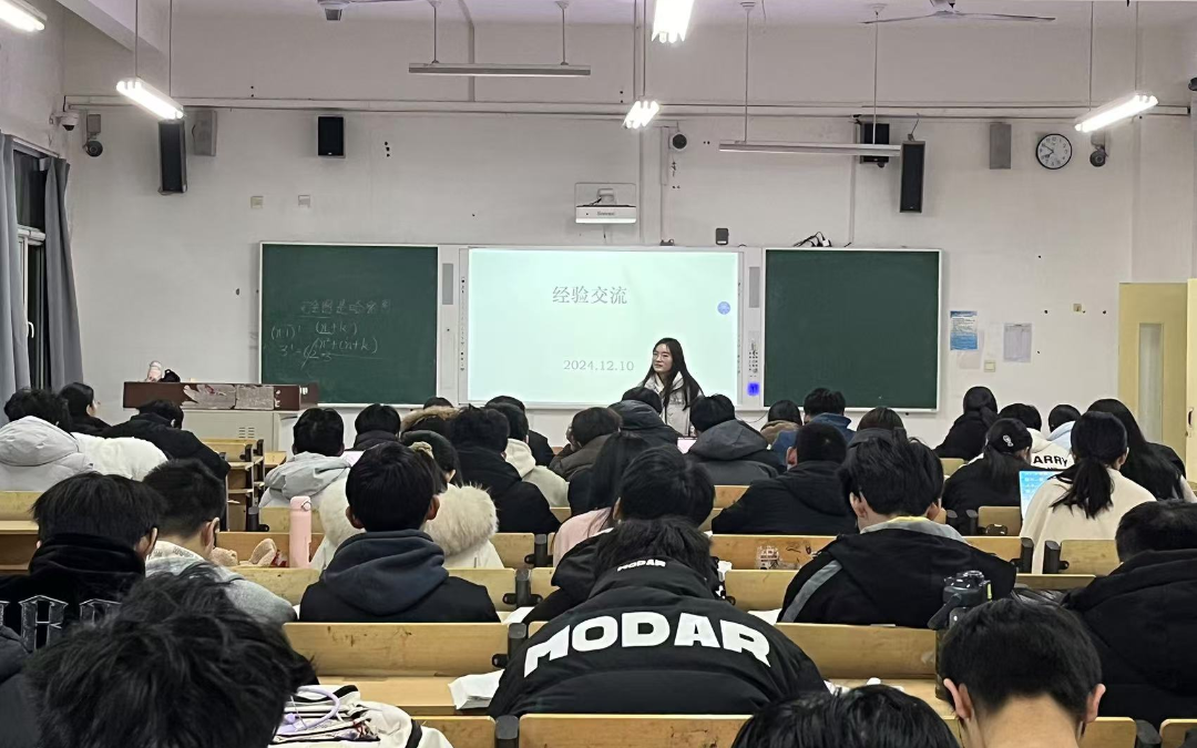 郑洪瑞同学分享了自己的学习经历。并对如何高效进行小组讨论,在交流中进行学习,将理论付于实践进行了细心讲解。并寄言“心向往之,行则将至”,为24级新生指明了学习道路。