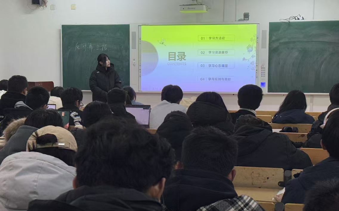孟晴同学分享了自己的学习方法,教给24级同学们如何建立自己的学习节奏,如何高效利用课堂时间,并悉心解答了学生们的疑惑。也告诉学生们,不要在意他人眼光,但行己路。