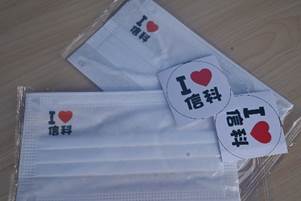 信科口罩、徽章等一件件小礼物