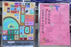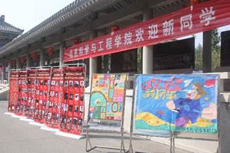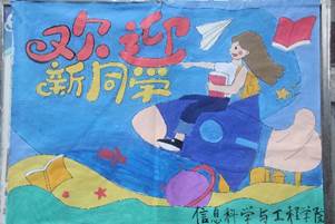 别具特色的迎新海报、缤纷多彩的学院展板