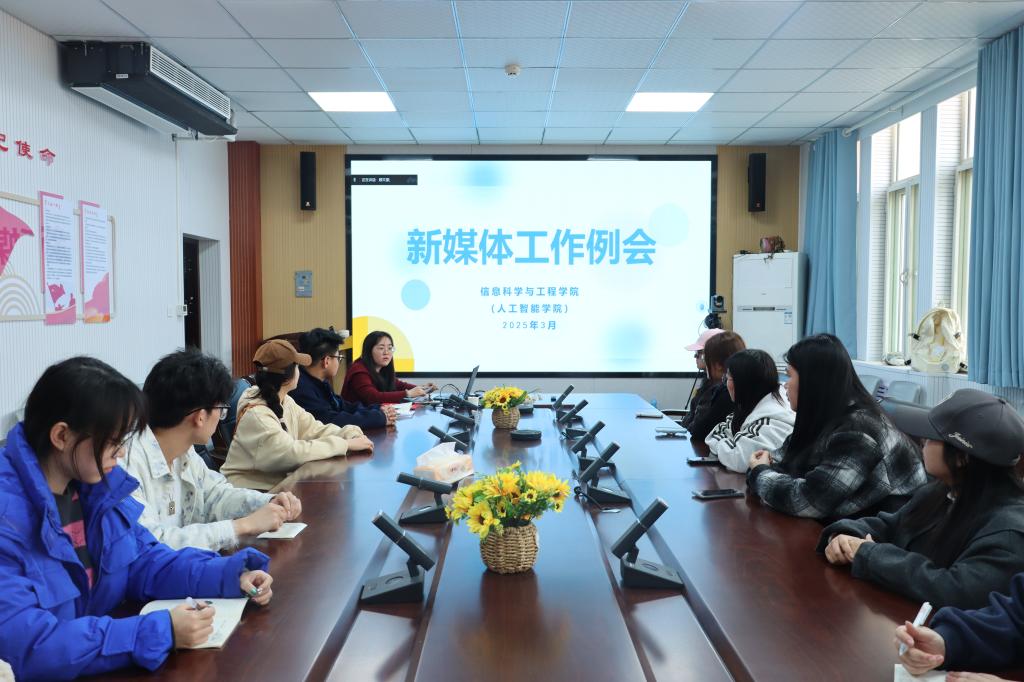 为提升院学生会新媒体中心的工作质效,激发成员的创新活力与专业热忱,全力打造更具传播力的学院媒体阵地,3 月 14 日,信息科学与工程学院(人工智能学院)院学生会新媒体中心在学院会议室召开工作例会。团总支副书记李瑶出席本次会议。