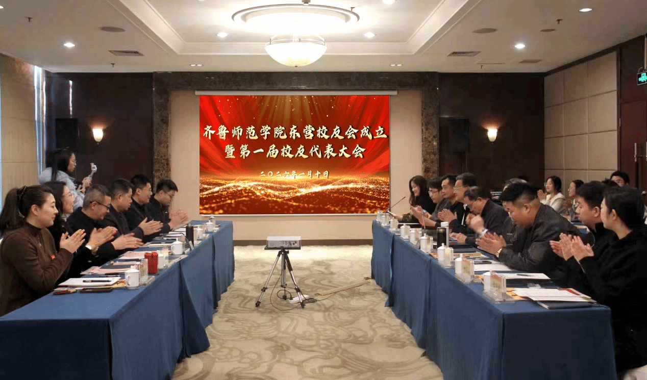 2026年1月10日,齐鲁师范学院东营校友会成立大会暨第一届校友代表大会在东营蓝海国际大酒店第二会议室顺利举行。齐鲁师范学院党委委员、副校长孙洪兆、校友工作办公室主任刘勇、部长张宏熙,信息科学与工程学院党委书记赵青、院长杜建彬、办公室主任刘树昊等人员,以及东营地区各届校友代表齐聚一堂,共同见证东营校友会的正式成立。