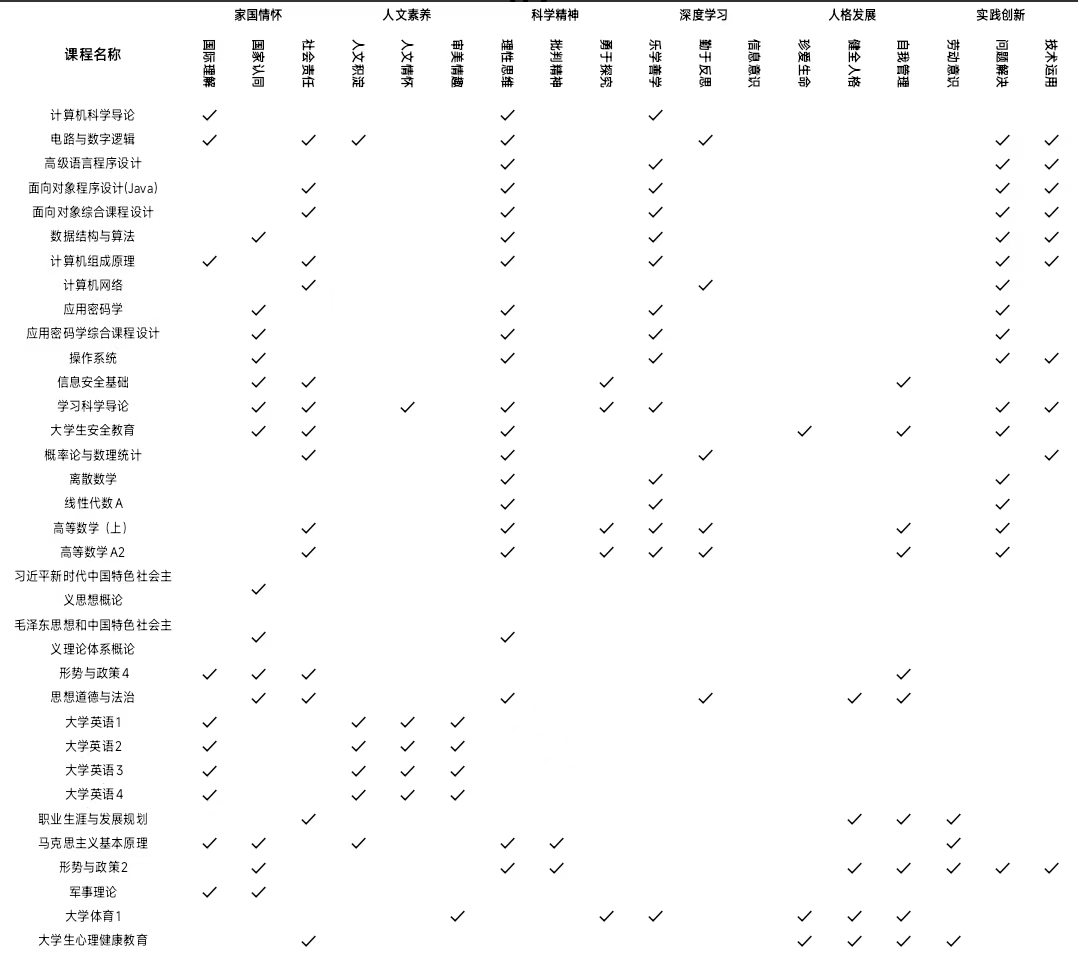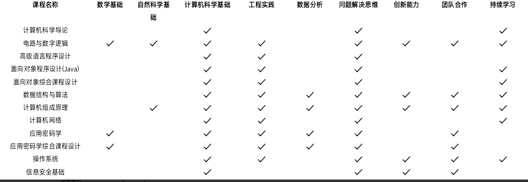 2.[专业素养]:具有良好科学文化素质及创新精神,掌握扎实的网络空间安全专业知识,视野开阔,善于创新,科学探究能力强,具有较强的分析问题和解决问题的能力;