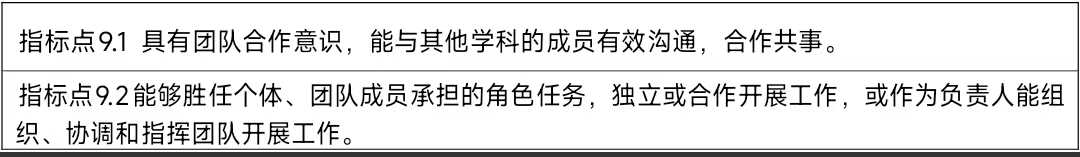 9.[个人和团队]:具有团队合作精神,能够在多学科背景下的团队中承担个体、团队成员以及负责人的角色。
