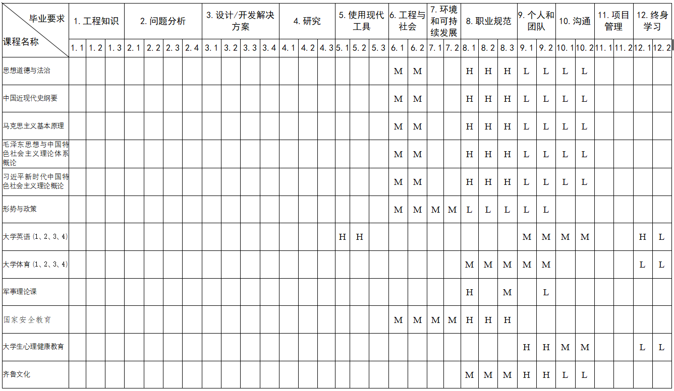 培养目标3.[综合素养]:具备满足工程实践所需的非专业通识知识体系。具有人文社会科学素养;具有创新意识、创业精神和工程师的专业素质;具有良好的团队合作与沟通能力,能够在不同职能团队中作为核心成员或者领导者,表现出良好的组织能力、决策能力与沟通协调能力。