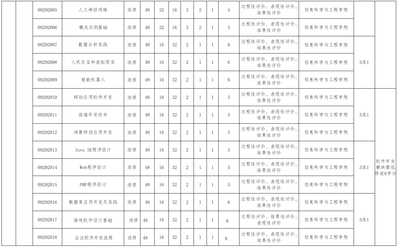 高级语言程序设计、数据结构、计算机组成原理、计算机网络、面向对象程序设计、操作系统、数据库系统概论、人工智能、软件工程、编译原理、算法设计与分析。