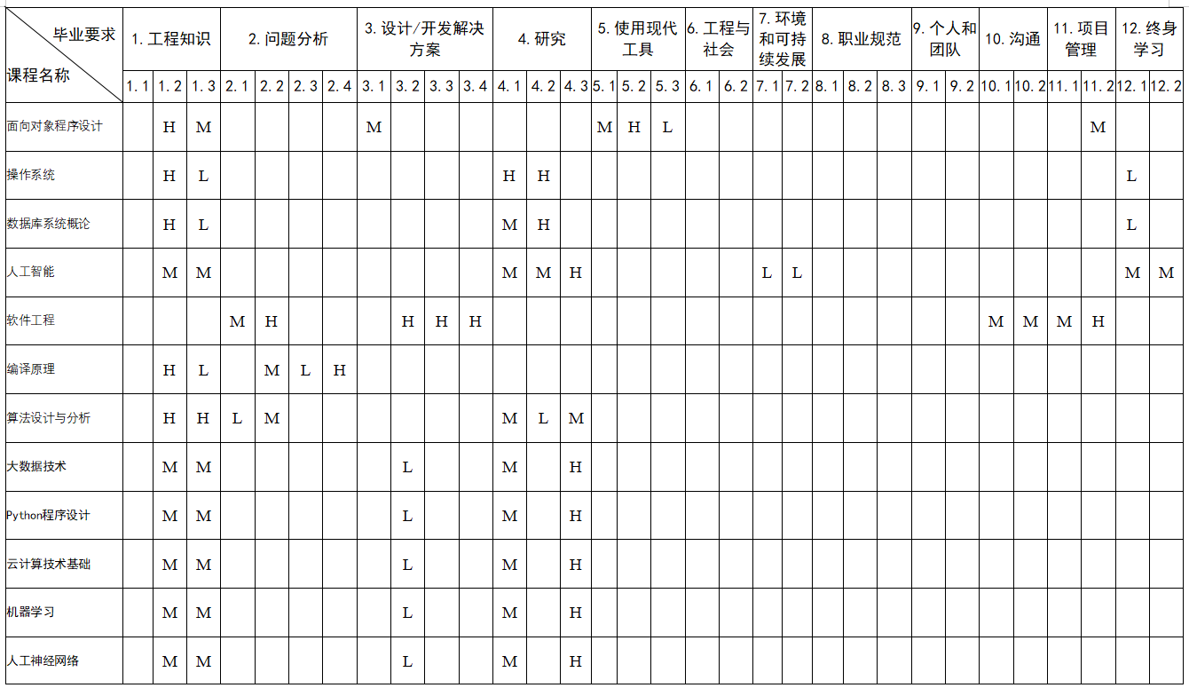 培养目标2.[专业能力]:具备满足工程实践需求的计算学科知识体系,能综合运用数学、自然科学、工程基础、项目管理和计算学科知识解决计算应用领域的复杂工程问题,能胜任软硬件开发、软硬件测试、运维工程师、技术支持、项目实施等计算机专业就业岗位。