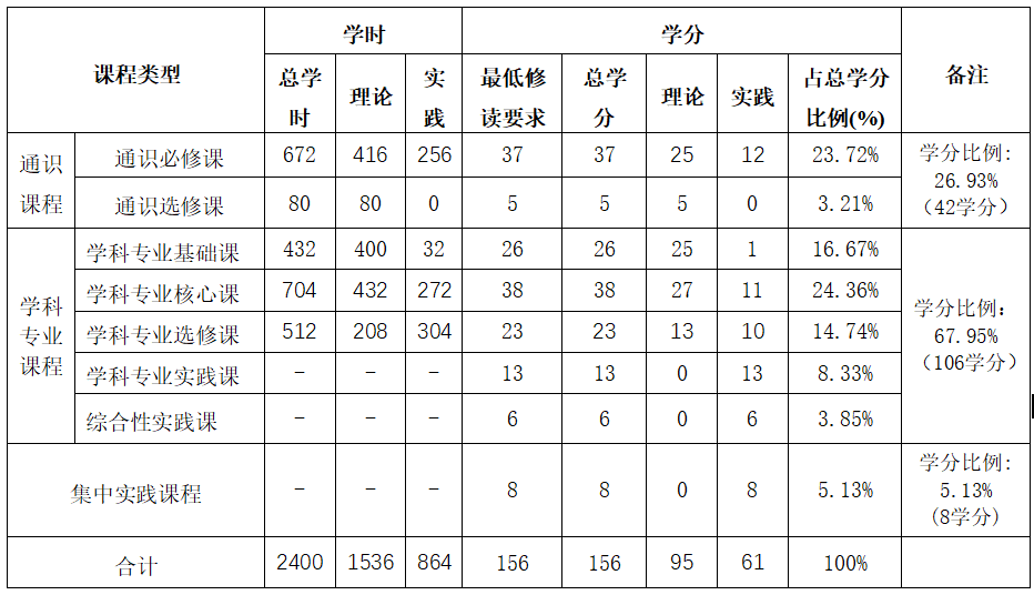 修完本专业规定的学分数并符合学校规定的其他毕业要求,经学校审核批准后,准予毕业。毕业要求的最低学分数为156学分。