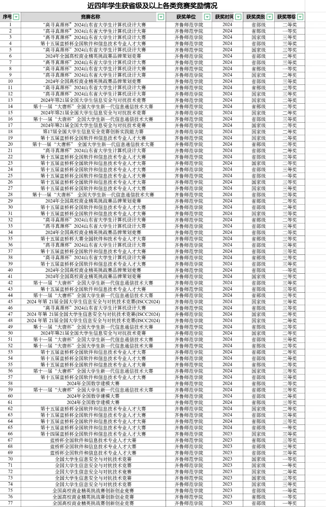 学院教师近年发表高质量学术论文近百篇,承担厅局级以上科研项目20余项,获省级科研与教学奖励、发明专利、著作等应用成果30余项。学院连续多年承办“大学生计算机设计大赛”、“蓝桥杯全国软件和信息技术比赛省级决赛”等重要赛事,学院学子荣获国家级学科竞赛奖项百余项、省部级学科竞赛奖项300余项。