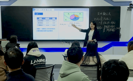 为了更好地呈现课堂教学,她饱含热情,积极向有经验的老教师请教,并积极参加省级青年教师培训、金师培训、人工智能赋能高等教育培训等培训活动。她精心打磨授课方式和内容,不断优化教学语言,结合实践案例深入浅出地讲解,获得学生一致好评。比如,通过引入赌场内参与赌博的赌徒十赌九输的例子,解释大数定律的数学原理,同学们一下子就明白了,她还借此提醒同学们远离赌博,远离侥幸心理。看到同学们坚定地点了点头,那一刻,她感到无比欣慰,“教学不仅仅是教知识,更是教做人、教做事。”在她的持续努力下,自己的教学能力得到了显著提升,连续两年斩获校级青年教师教学比赛一等奖,获得2024年校级课程思政教学比赛二等奖、山东省第十一届高校青年教师教学比赛三等奖等荣誉。