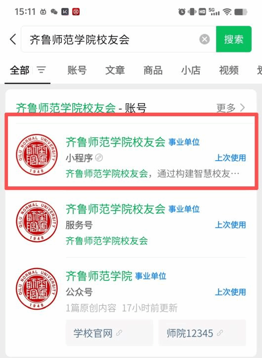 1.校友会手机端可通过微信扫码打开,也可在微信中搜索“齐鲁师范学院校友会”打开小程序。