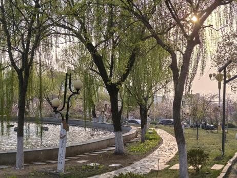 春风拂遍校园楼宇,草木萌新,生灵相伴