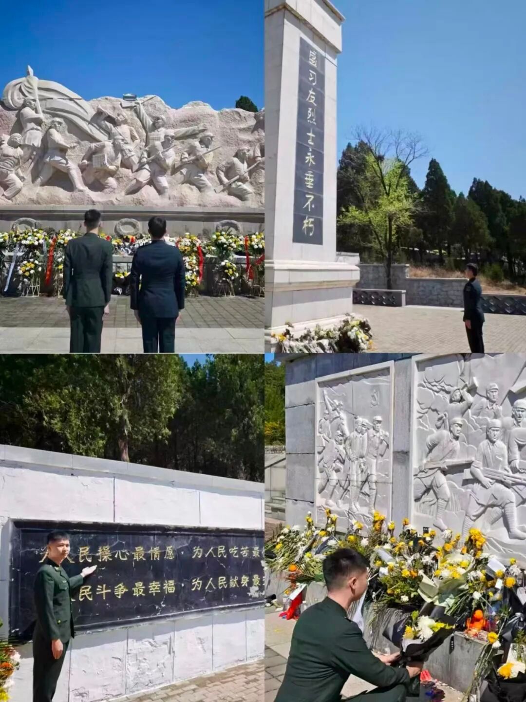活动当天,学院退役学生代表身着整齐服装,手持鲜花,神情肃穆地走进烈士陵园。他们整齐列队、默哀致敬,向革命先烈敬献鲜花、擦拭墓碑、鞠躬行礼,以军人的庄重礼仪缅怀英雄功绩,表达崇高敬意与深切哀思。退役学生代表现场重温英烈事迹,用亲身经历与军人视角,讲述革命先辈浴血奋战、保家卫国的峥嵘岁月,传递 “退伍不褪色、退役不退志” 的责任担当。