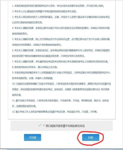勾选“我已同意并接受遵守本网站报名协议”,然后点击“同意”报名协议。