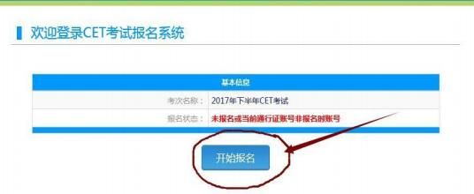 ( 4)成功登陆 CET 考试报名系统后,点击 “开始报名”。