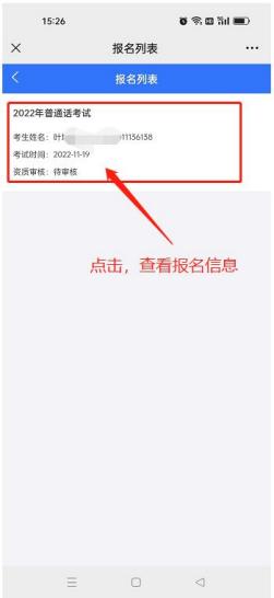 报名成功后跳转报名列表页面,点击报名可查看报名详细信息。
